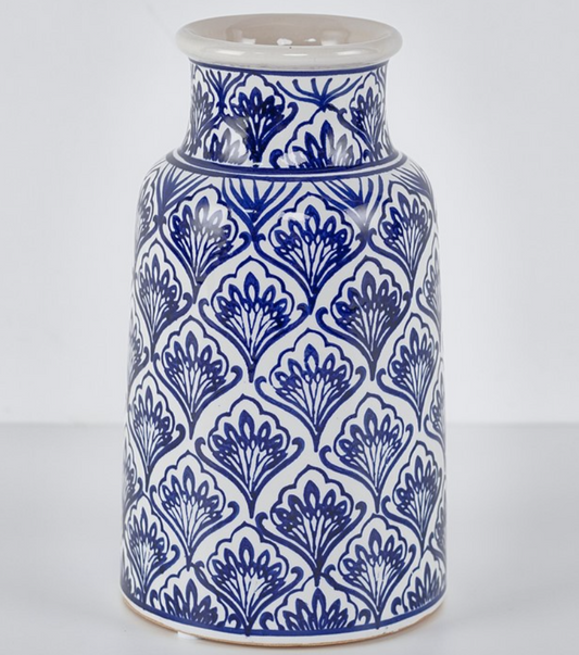 Blue and White Ceramic Vase 8 inches tall